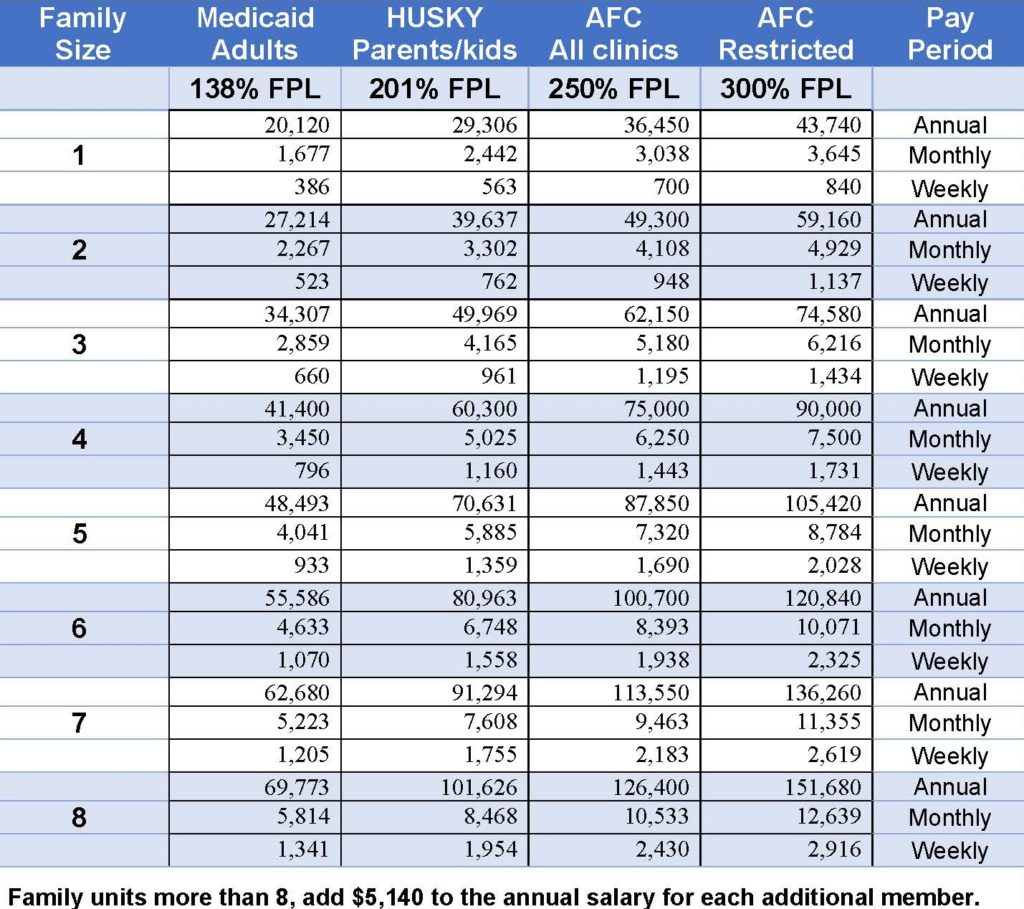 El programa de Clínicas Americares gratis ofrece servicios de atención médica, de forma gratuita, a las personas elegibles con un ingreso total de los hogares de menos de 250% del nivel federal de pobreza. Para 2023, este nivel de ingresos sería la siguiente: